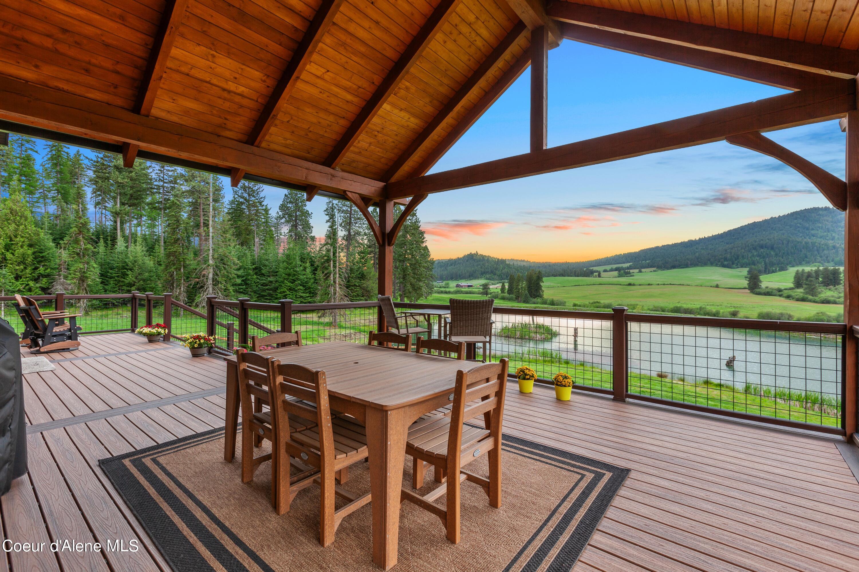 Whether used as an elite equine therapy center, exclusive luxury retreat, or a private family compound, this 140-acre ranch is a true masterpiece of self-sufficient, high-end living. Showcasing a custom built 4902 sq ft 4 bedroom, 3 1/2 bath timber framed home with an open layout, massive timber trusses, impressive great room, custom 20' natural stone, wood burning fireplace, and radiant floor heating. Natural light pours into this home through the gallery wall of large Andersen doors & windows that lead out to the sprawling 575 sq ft deck with breathtaking sunset views of Plummer Butte. Get creative in the gourmet chef's kitchen equipped with Viking appliances, custom cabinetry, exotic stone counters, back splash, and walls, oversized island & 12' long breakfast bar adjacent to the turret style dining area.