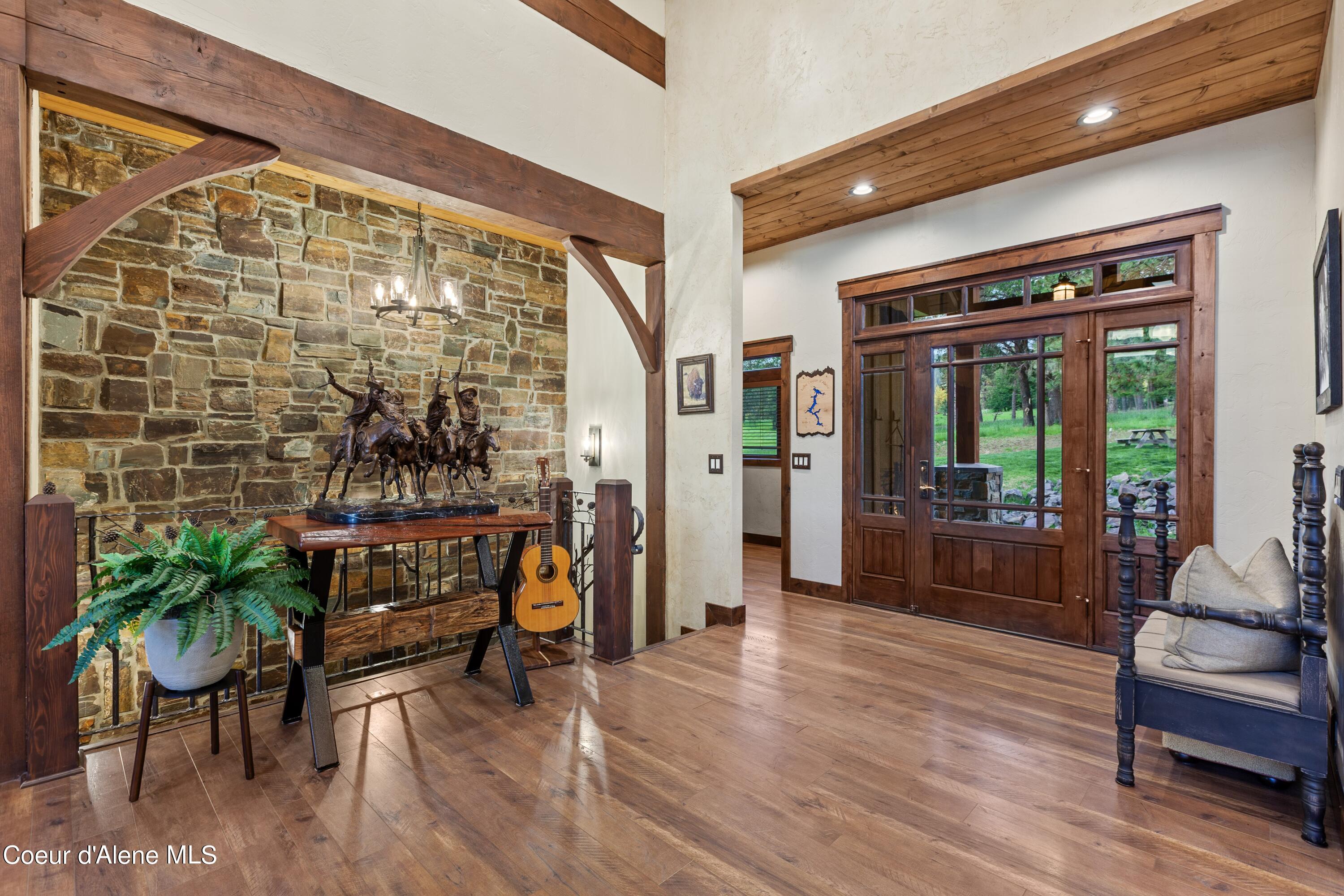 This home is loaded with abundant storage & functional living spaces including a classic butlers pantry, laundry center & mudroom, luxurious main floor master suite, built in bookcases, lower level billiards area, a cold storage room, restful guest bedrooms, and an extraordinary secret room! The outside world is yours to explore including a private 2 acre, 25' deep lake, year round creek, 3 streams, 2 high producing private wells, underground power & concrete foundation for future guest house! Embark on miles of breathtaking trails weaving through rolling pastures, mature forests, and natural freshwater springs! The surrounding land offers opportunities for equine assisted therapy programs, training or private luxury boarding, wellness workshops and exclusive retreat experiences. There is ample space for event hosting, nature immersion and luxury guest lodging. This is a truly serene retreat from the hustle and bustle of city life, yet only 45 minutes from amenities of Coeur d'Alene, and just 10 minutes to a boat launch & moorage where you can cruise Lake Coeur d'Alene & multiple rivers! Your North Idaho lifestyle awaits!